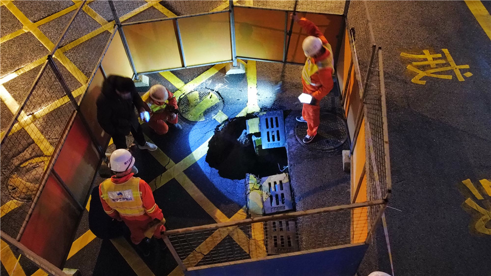 由于搶修位置地下管線復雜,施工場地狹窄,施工過程中,既要保障消防車輛正常出入,又要保護地下管線,同時陰雨連綿的天氣,給施工造成極大不便。搶險人員想方設法,克服重重困難全力推進,經過連夜奮戰(zhàn),第二天下午16時,已完成塌陷井室修復、基坑灌注混凝土工作,目前正進行混凝土養(yǎng)護,預計2月19日前完成最后瀝青路面恢復工作。