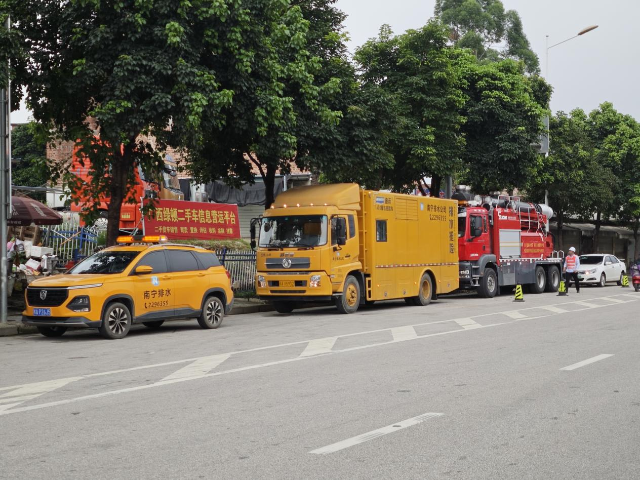 在南寧市第十中學(xué)門口上津路,5輛排水搶險(xiǎn)車輛,3套抽升設(shè)備,3組大型處置單元連續(xù)作戰(zhàn),24小時(shí)布控在上津路沿線進(jìn)行值守保障。由于周邊路網(wǎng)尚未配套齊全,第十中學(xué)上津路出入口為該考點(diǎn)唯一出入口,也是上津路的低洼點(diǎn),積水風(fēng)險(xiǎn)較大。降雨來(lái)臨時(shí),值守的排水工作人員按照研判方案分別在沙井路上津路口、三津上津路口、江南綜合交易中心等處開展抽排作業(yè),并在上津路十中門前打開井蓋、篦子加快排水。同時(shí)組織抽排作業(yè),降水位騰庫(kù)容,確保雨水管道處于最低液位運(yùn)行。截止高考結(jié)束前,已持續(xù)值守、處置超過60小時(shí),十中路段未發(fā)生積水內(nèi)澇事件。