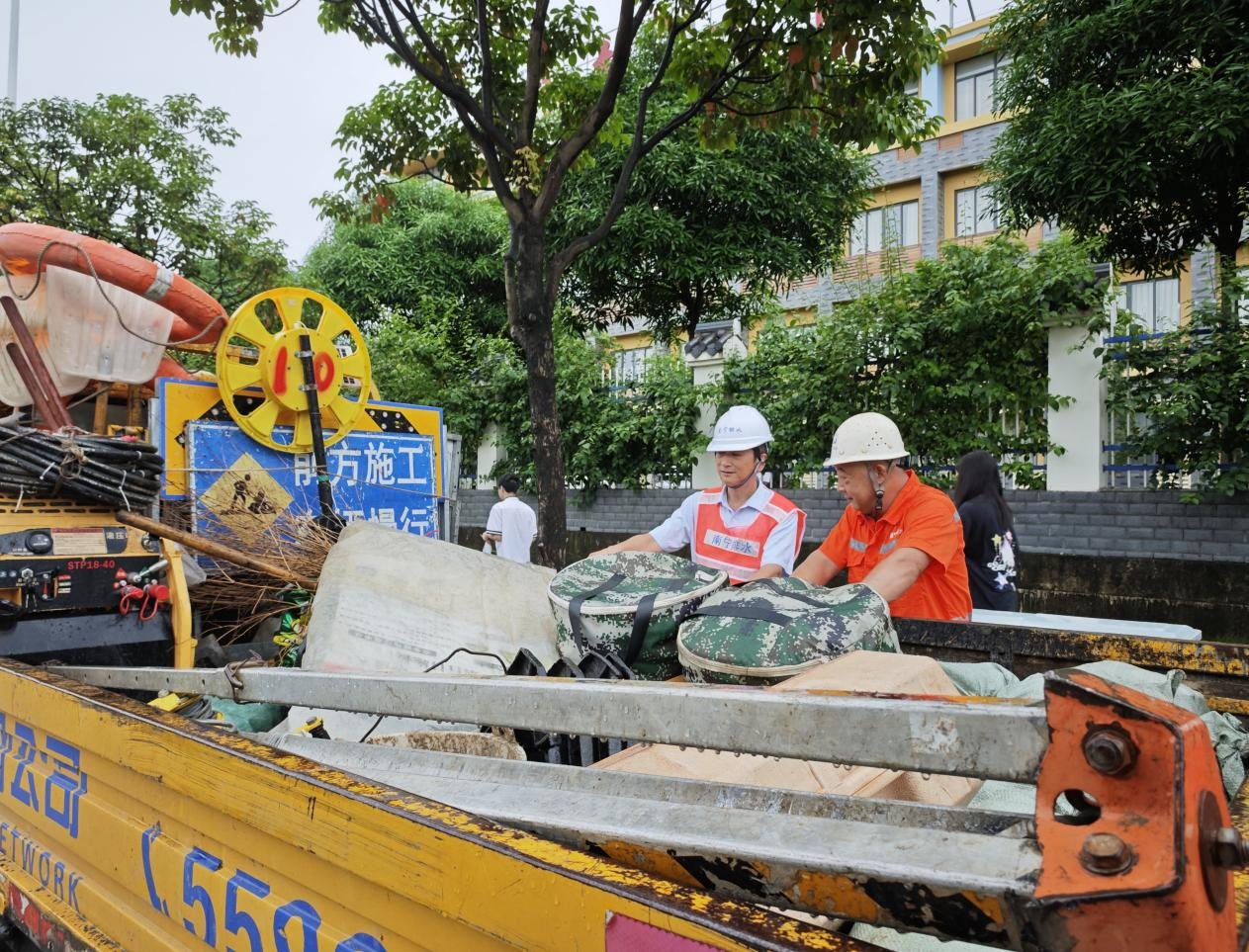 工作人員檢查防汛車輛運(yùn)行情況。廖玉貞/攝